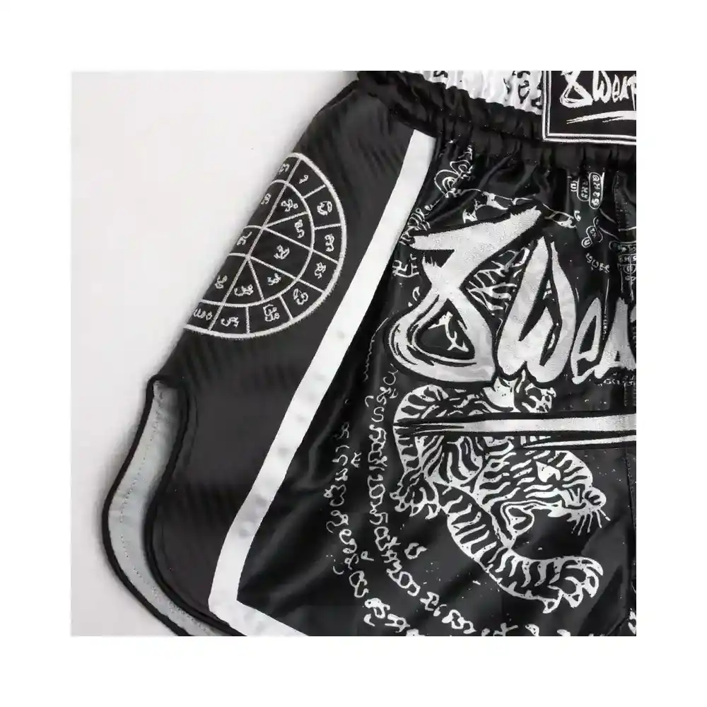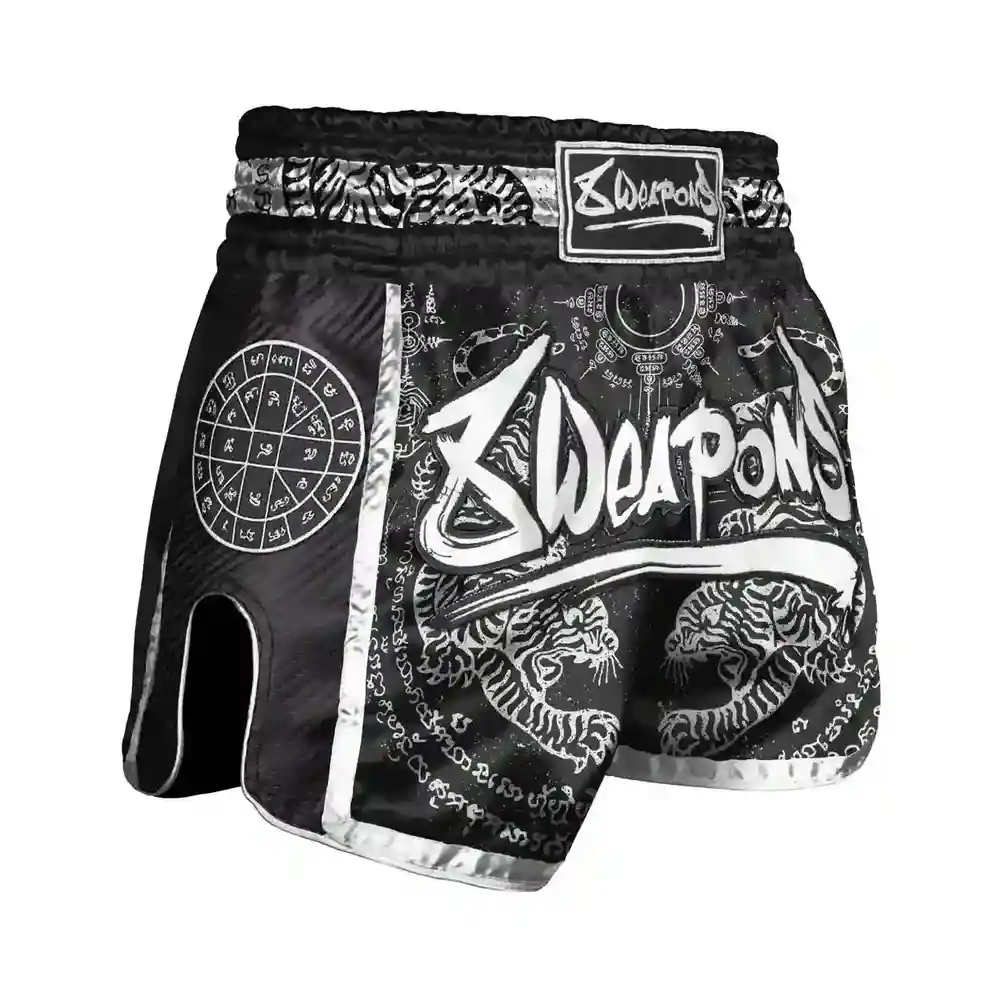 8 Vapen Muay Thai Shorts Carbon Sak Yant Tigers Svart