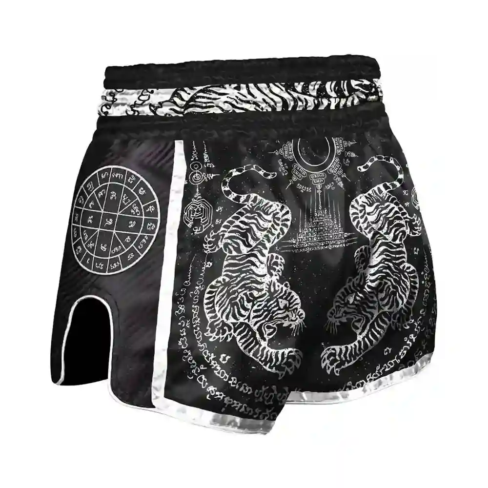 8 WEAPONS Carbon Muay Thai Sak Yant Tigers shorts är en modern modell designad för krävande thaiboxningskämpar. Tack vare den raffinerade skärningen och användningen av högkvalitativa material garanterar de maximal komfort och rörelsefrihet under träning och matcher
