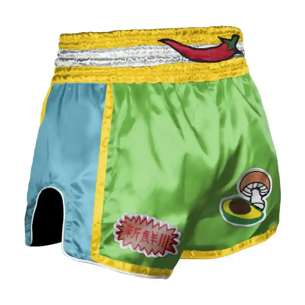 Stil som väcker uppmärksamhet…Med 8 WEAPONS Yummy Shorts kommer du att sticka ut både på mattan och i ringen. Det här är inga vanliga Muay Thai-shorts – de är en kombination av energi, stil och funktionalitet. Designen är inspirerad av street food-kulturen, där smak, färg och intensitet i upplevelsen spelar en viktig roll. Levande färger, roliga lappar och unika detaljer gör dessa shorts till en verklig raritet i kampsportvärlden.Thailändskt hantverk – handgjorda från hjärtatavMuayThai